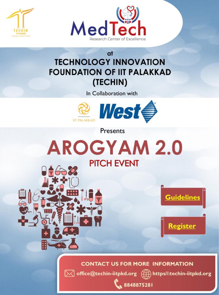 Arogyam 2.0 is an online pitch event organized by MedTech Research Center of Excellence (MedTech CoE) – TECHIN of IIT Palakkad. It is a joint program by West’s Digital Technology Center (DTC) in Bengaluru and TECHIN for budding entrepreneurs to put forward their ideas to bring medical technology to life.