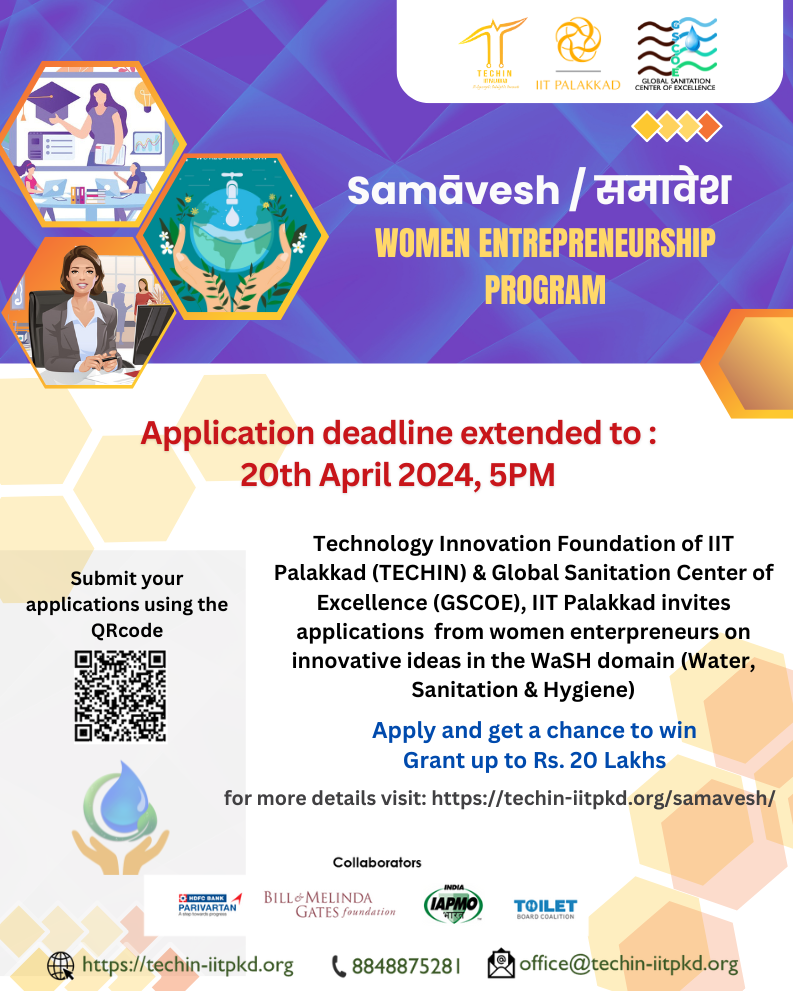 SAMĀVESH is a Women Entrepreneurship Development Program designed to empower women through structured skill development, capacity building, and access to entrepreneurial opportunities. The program aims to foster economic independence, promote innovation, and strengthen women’s participation in the startup ecosystem. SAMĀVESH also focuses on incubating and supporting women-led startups across diverse sectors, particularly those working with technologies at Technology Readiness Level (TRL) 4 and above. It provides a comprehensive platform for women entrepreneurs to transform innovative ideas into scalable and sustainable ventures.